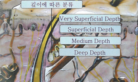 피부는 크게 표피, 진피, 피하 지방층으로 구분합니다. 환자가 어떤 치료 효과를 원하느냐에 따라 시술하는 필링의 깊이가 달라질 것입니다.