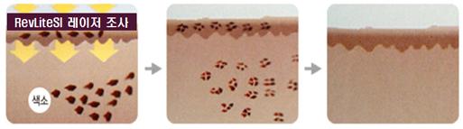 레블라이트SI 레이저 토닝은 멜리닌만을 타겟(예: 기미, 잡티 등)으로 아주 짧은 시간동안 높은 고출력의 에너지로 잘게 부수는 원리입니다.